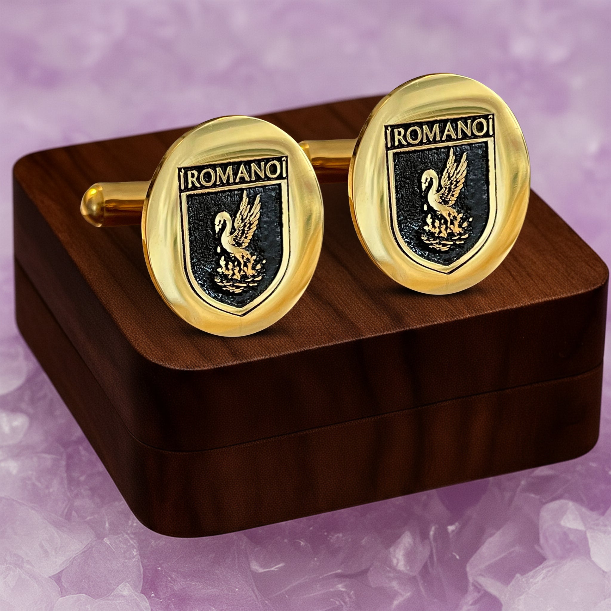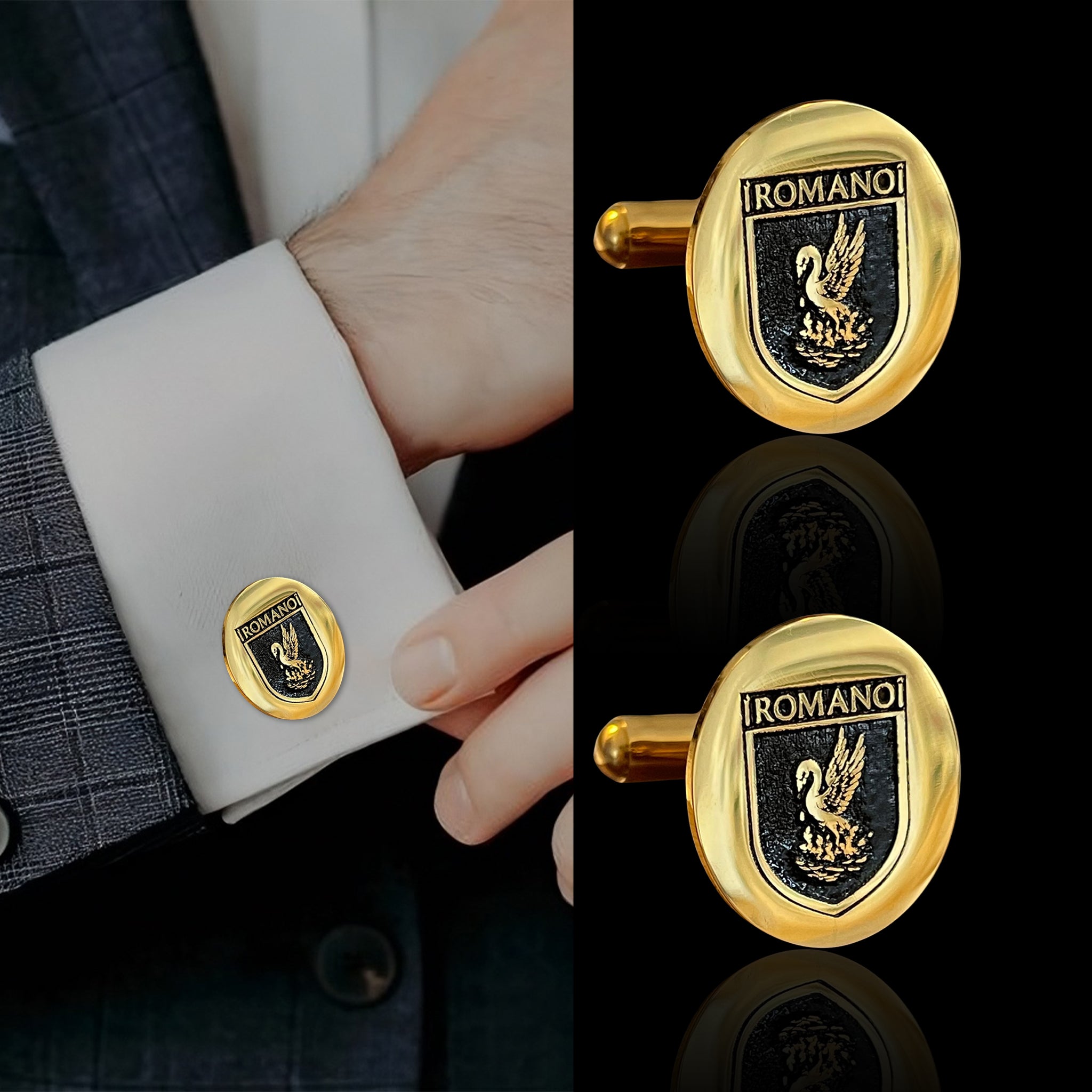 Engraved Family Crest Cufflinks – Personalized Coat of Arms Gift for Men
