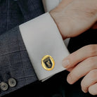 These cufflinks are available in four classic shapes—round, oval, square, and shield—allowing you to select the best style for your engraving. Each design highlights the detail of your crest or monogram while maintaining a refined appearance.