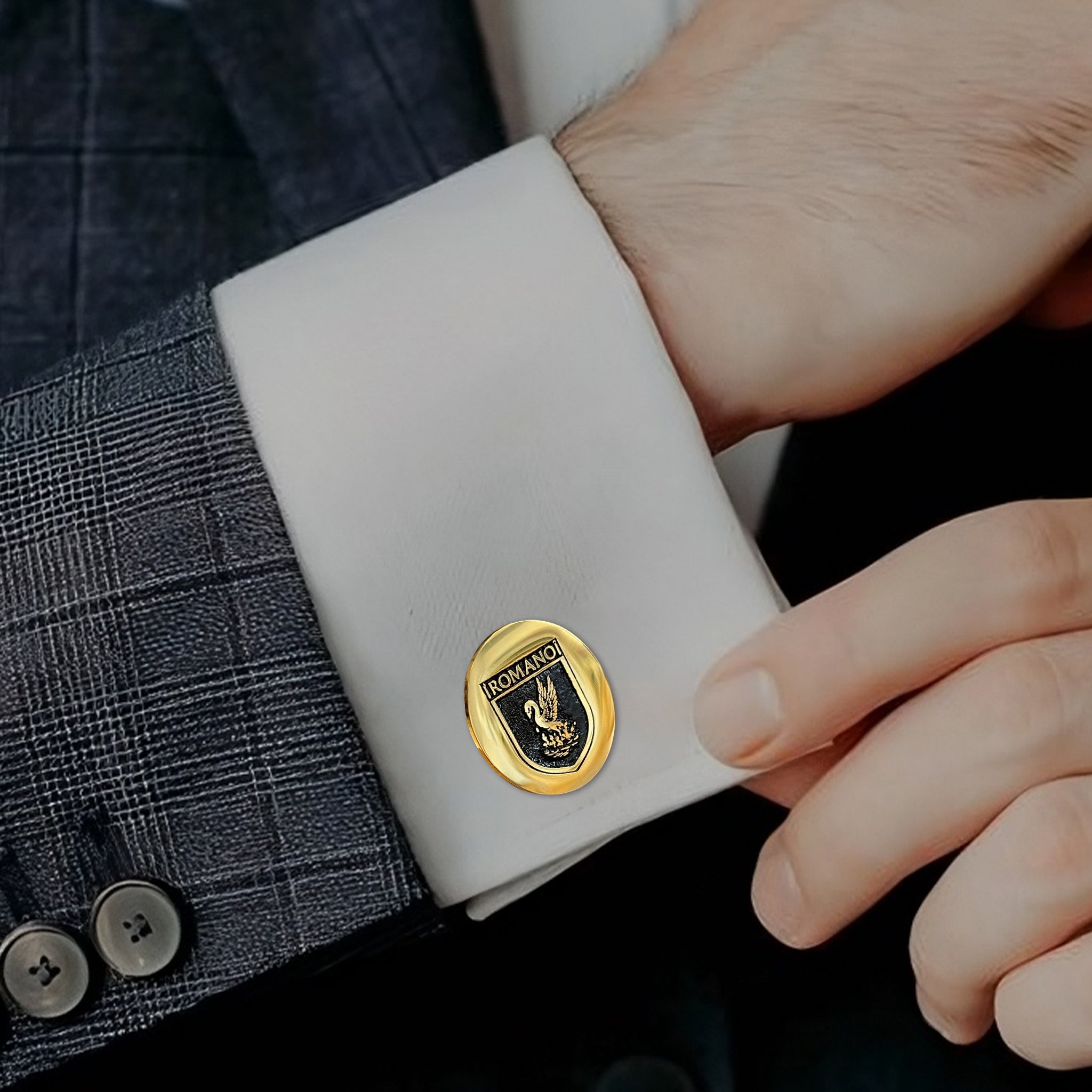 Engraved Family Crest Cufflinks for Men | Personalized Coat of Arms or Logo Cufflinks Gift