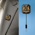 Each pin is made to order and engraved with your chosen design—whether it's a coat of arms, monogram, or insignia. Available in gold or silver finishes, it’s the perfect complement to a groom’s attire or a formal look.