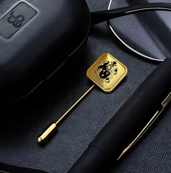 Your lapel pin is custom-crafted with your family crest, logo, or coat of arms, making it perfect for weddings, reunions, or milestone celebrations. Choose from gold or silver finishes to complement your formalwear.