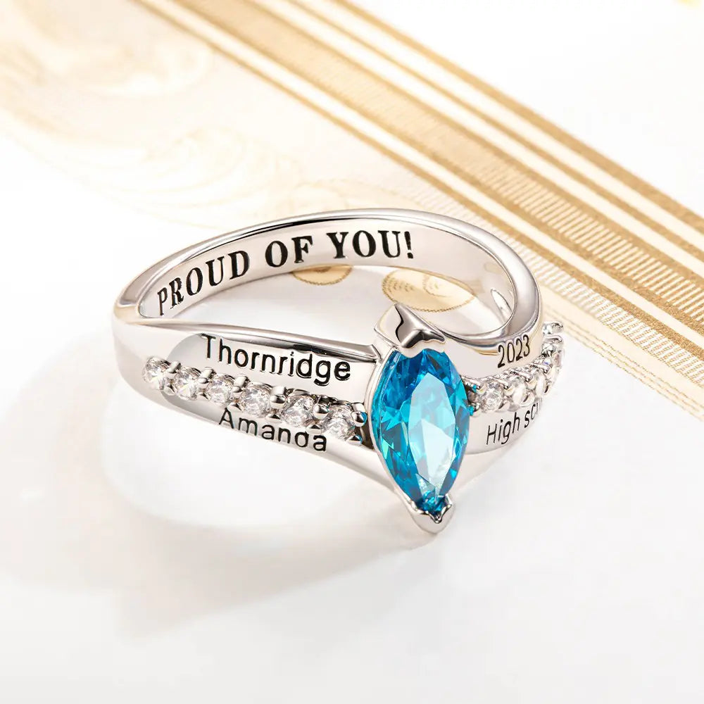 Graduation rings for students, graduates, and professionals, including personalized class rings with names, birthstones, and custom engravings designed to celebrate academic achievements and milestones.