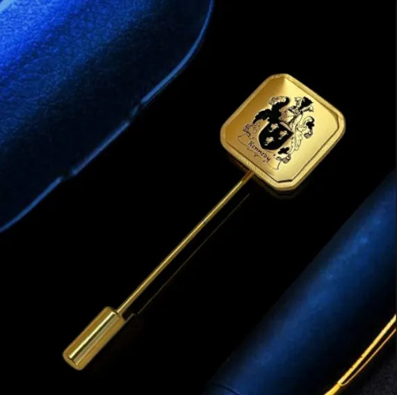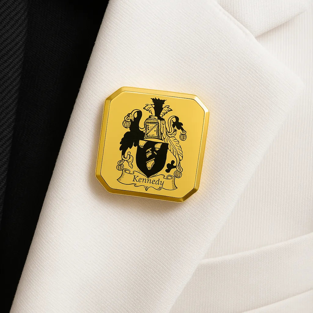 Showcase your identity and heritage with this engraved lapel pin, customized with your family crest, business logo, or emblem. Ideal for weddings, black-tie events, or special celebrations, this pin adds meaning and class to any suit or tuxedo.