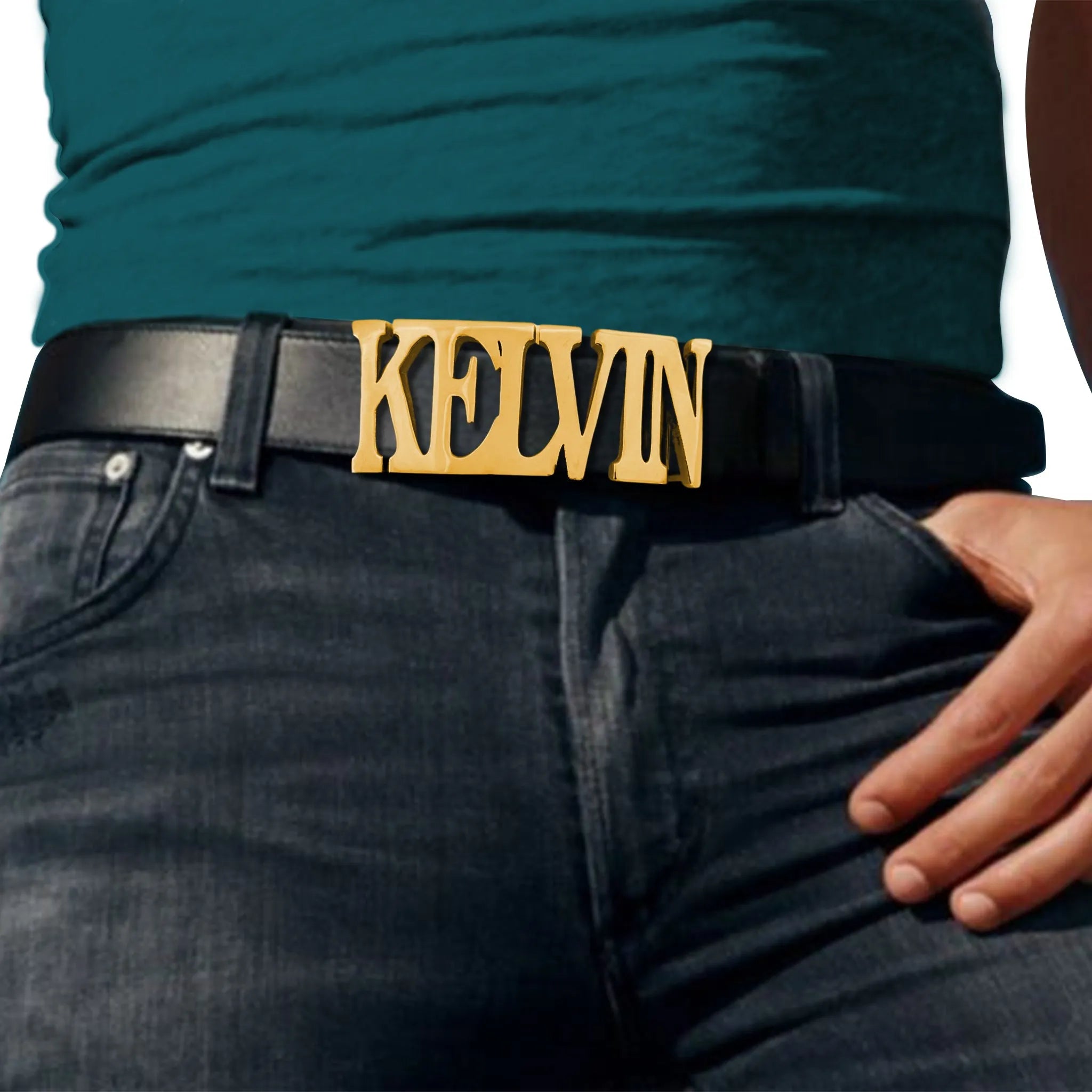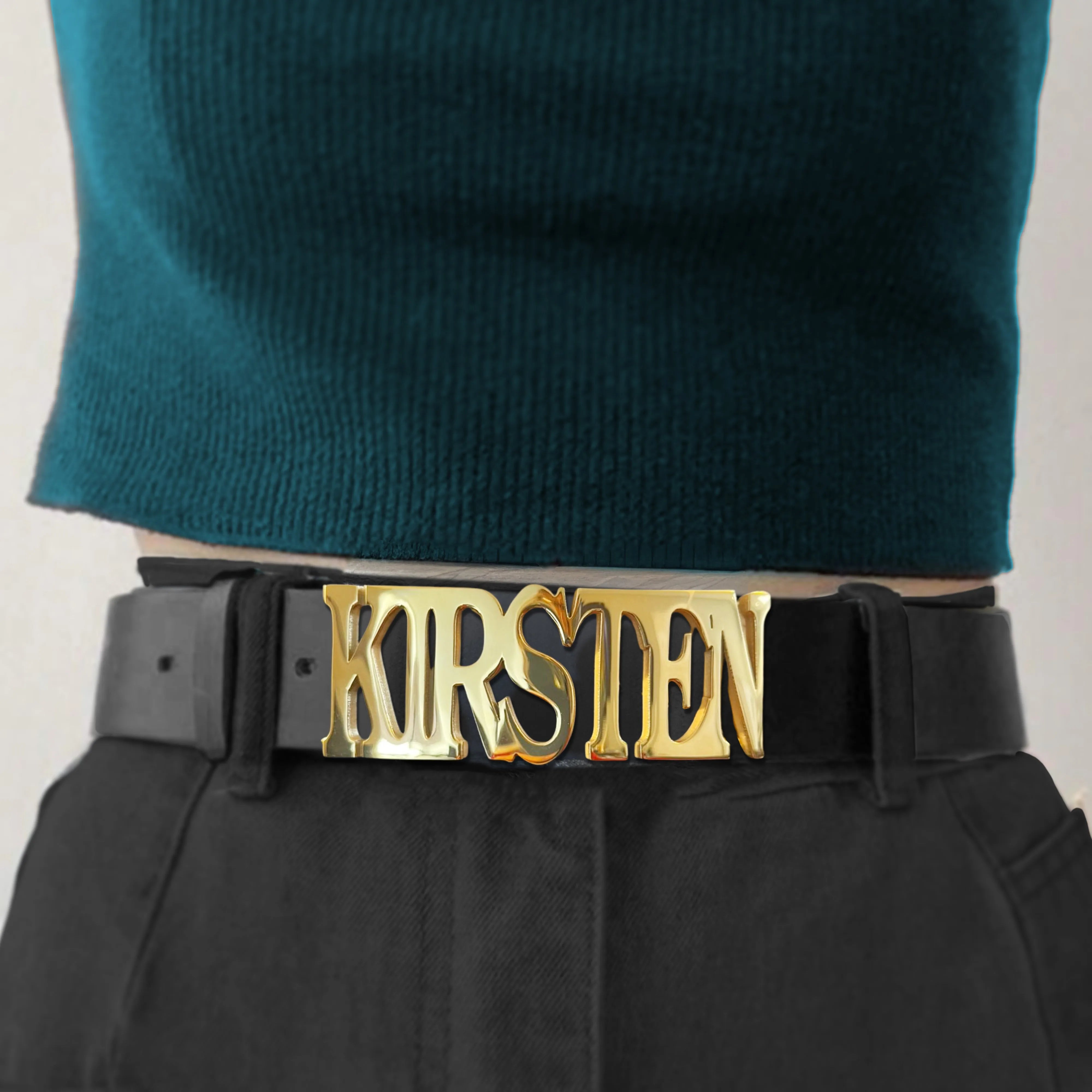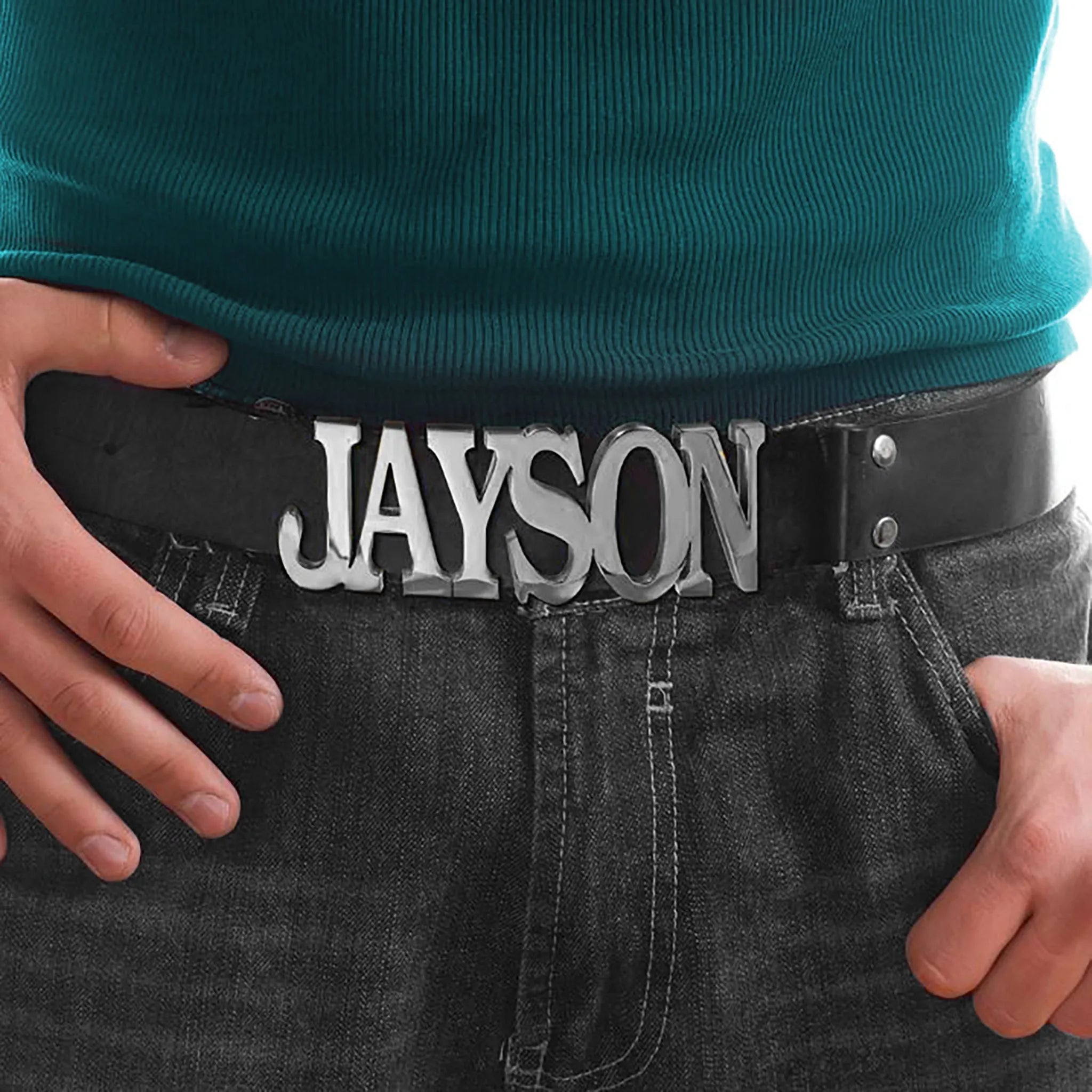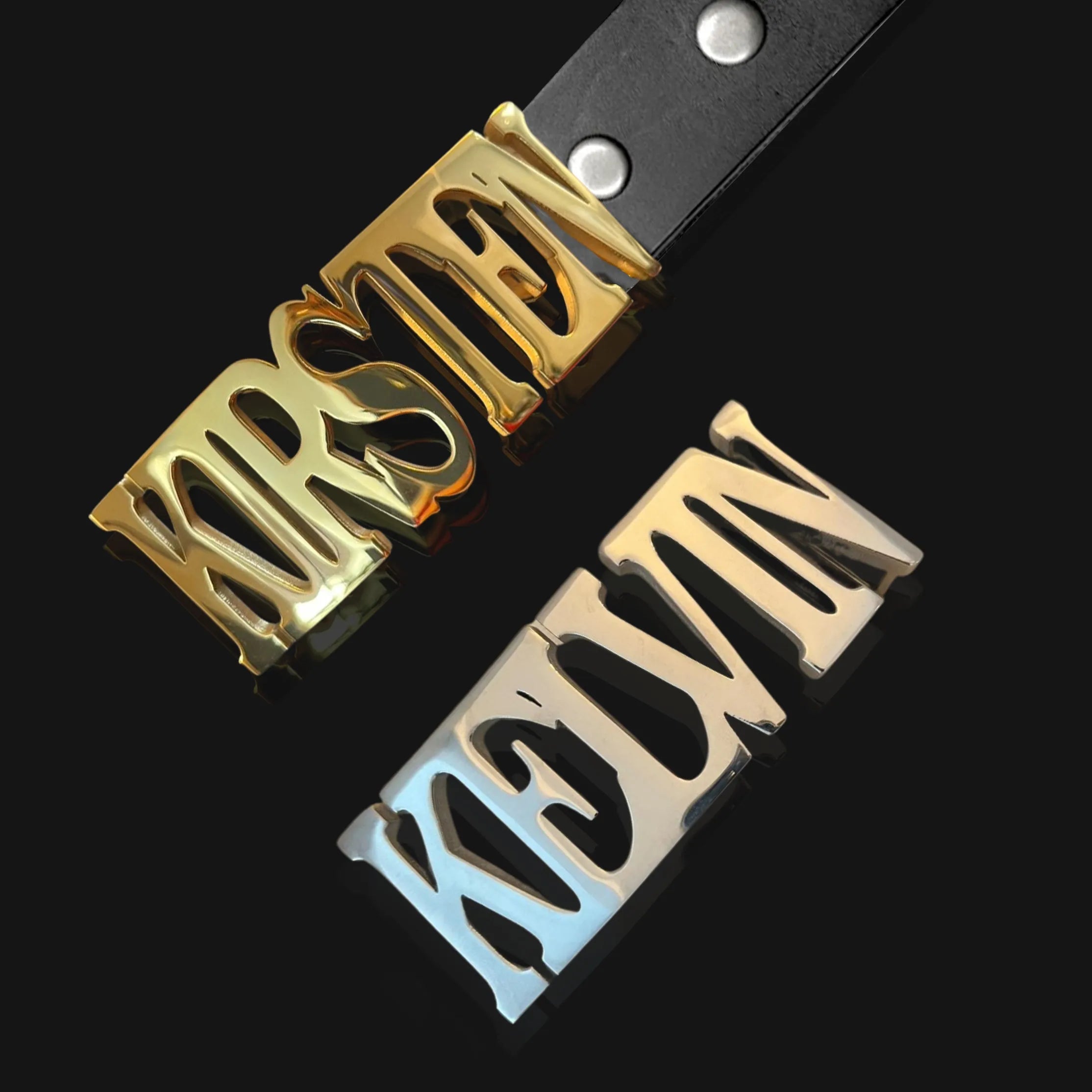 Personalized Custom Name Belt Buckle – Silver or Gold Finish, Optional Leather Belt