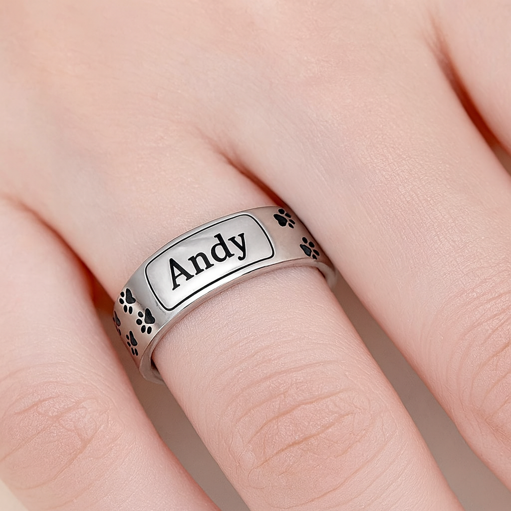 Personalized Paw Print Collar Ring – 925 Sterling Silver Engraved Pet Memorial Ring